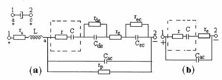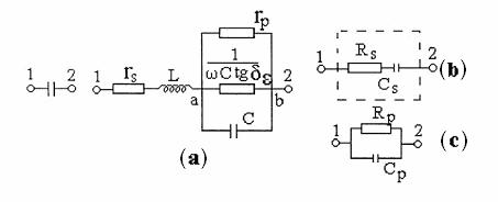 Fig. 7.1 Schema echivalenta completa (a) si simplificata (b; c) a unui condensator nepolarizat.
