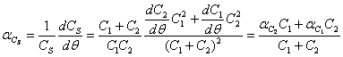 Pentru conexiunea paralel, expresia coeficientului de variatie a capacitatii cu temperatura, este :