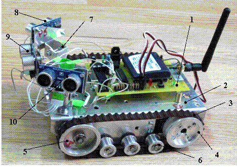 Fig. 1. Vedere din stanga a minirobotului cu senile (Left view of the crawler minirobot)