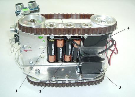 Fig. 2. Elementele partii inferioare ale minirobotului cu senile (Bottom elements of the crawler minirobot)