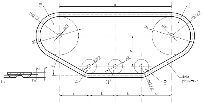 Se cunoaste lungimea primitiva a curelei : Lp = 362 mm