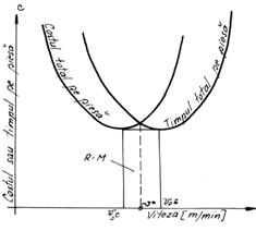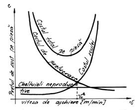 Reprezentând costul de prelucrare, costul sculei precum si cheltuielile neproductive într-o diagrama, (fig.7.5.) în functie de viteza v(m/min) rezulta costul total pe piesa (ca o înfasuratoare a curbelor reprezentate).