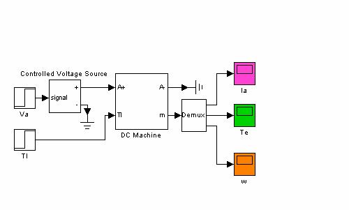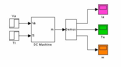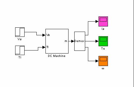 Block diagram shown in Fig. 6 is implemented in SIMULINK file undermaskdcmotormodel3.mdl . An example for simulation is contained in SIMULINK file dcmotormodel3.mdl (see Fig. 7).