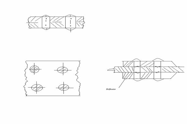 In cazul in care fortele care solicita nituirea actioneaza perpendicular pe axa nitului ,tija acestora este solicitata la forfecare si strivire .Forta ce revine unui nit este F1=F/n ,n este numarul de nituri
