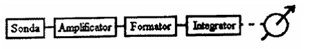 Instalatia experimentala: Orice radiometru are mai multe etaje principale care apar sub forma urmatoarei scheme bloc: