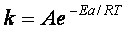 S-au notat cu: A, factorul de frecventa care depinde de numarul de ciocniri dintre molecule; R, constanta universala a gazelor ideale, R = 8,314 J/mol.K (īn S.I.) sau 1,987 cal/mol.K (īn sistemul tolerat); T, temperatura absoluta; Ea, energia de activare este surplusul de energie, peste valoarea medie a moleculelor active, care participa la reactia chimica.