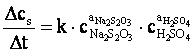 Pentru reactia dintre tiosulfatul de sodiu si acidul sulfuric: