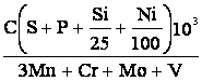 Susceptibilitatea otelurilor slab aliate fata de fisurarea la cald poate fi estimata cu indicele de fisurare HCS: