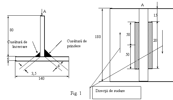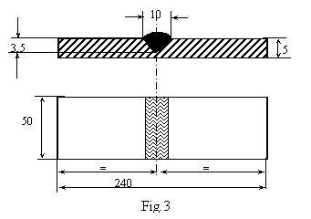 Incercarea consta in depunerea unei suduri pe o proba supusa unei solicitari te intindere normala pe directia de sudare si urmarirea fisurilor in metalul depus. Proba are forma si dimensiunile date in fig.3.