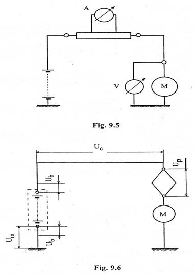 Starea necorespunzatoare a bornelor bateriei, arderea contactelor intrerupatorului sau marirea rezistentei conductoarelor de legatura ale motorului electric se asociaza cu aparitia unei caderi mari de tensiune in circuit. in aceste caz este necesar sa se masoare caderea de tensiune la fiecare element de conectare (fig. 9.6).