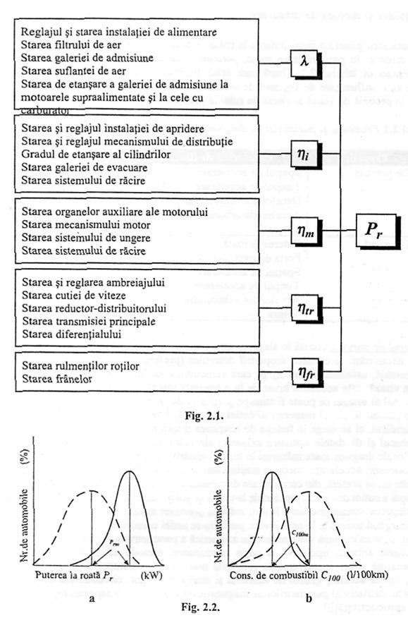 Intocmind schema de legaturi ale parametrului de diagnosticare Pr si factorii de stare care il determina, se observa (fig.2.1.) ca legatura multipla caracteristica a acestuia face ca informativitatea sa sa fie redusa. Drept urmare, testarea vehiculelor dupa acest parametru de diagnosticare are numai un 141h71b caracter general; nerealizarea valorii minime admisibila a puterii la roata arata ca starea tehnica a unuia sau mai multor subansambluri prezente in schema de legaturi din figura 2.1 este necorespunzatoare, iar depistarea acestora impune in continuare o diagnosticare detaliata pe elemente.