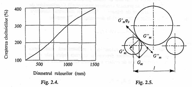 Pentru orientare, in figura 2.4. se prezinta cresterea procentuala a cheltuielilor de productie si instalare ale standurilor de franare in functie de diametrul rulourilor. Din aceste motive raza rulourilor se limiteaza la domeniul stabilit empiric: