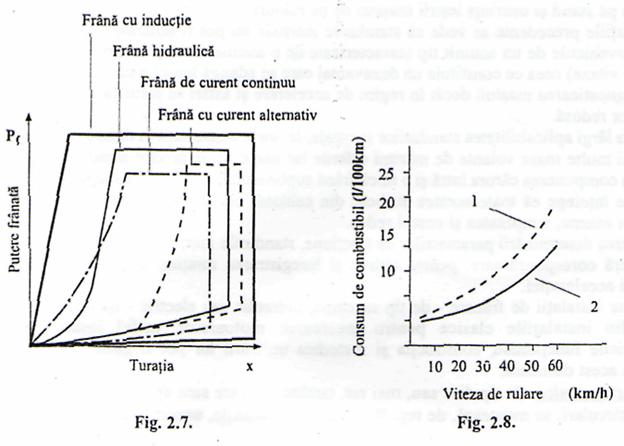 Din punct de vedere al caracteristicii franelor (domeniul de variatie al puterii in functie de turatie), o privire comparativa (fig.2.7) arata ca cele mai avantajoase suni franele cu inductie iar domeniul cel mai restrans il au franele cu altematoare asincrone.