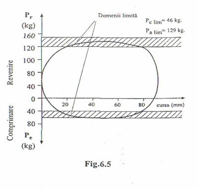 Cracteristica amortizorului este un grafic in care sunt inscrise eforturile necesare pentru deplasarea tijei in raport cu corpul amortizorului in cele doua curse, asa cum se exemplifica in graficul din fig. 6.5 pentru un amortizor de tip Armstrong.