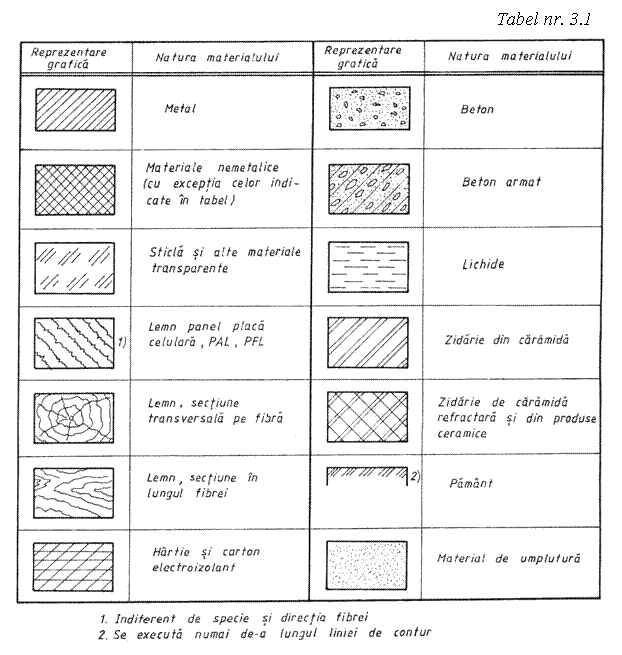 pentru indicarea materialului în sectiune, redate în tabelul 3.1.