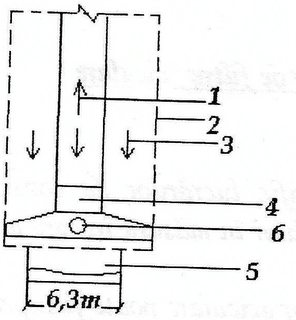 1- conducta de aspiratie; 2- sita de panza metalica; 3- spatiile dintre panza si conductaprin care circula apa; 4- supapa la baza conductei; 5- calcana dintata; 6- bila din lemn cauciucata