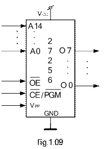 Dupa cum rezulta din denumirea circuitului avem de-a facecu o memorie programabila (P) electric (E), destinata citirii (ROM). Ea are o capacitate de 256 kilobiti grupati īn 32 de kiloocteti (kO). Schema functionala a circuitului se prezinta īn figura 1.xxx. Ea corespunde functiunilor/facilitatilor pe care circuitul trebuie sa le realizeze/asigure īn cadrul unui sistem cu microprocessor. Terminalele specifice circuitului sunt: