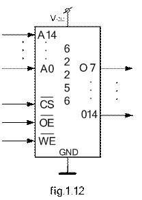 a GND. Diagramele din figura 1.13 prezinta semnalele de comanda necesare si functionarea memoriei īntr-o secventa de citire (din memorie). Īn diagrama nu exista referire la semnalul de validare a scrierii, el fiind inactiv īn secventa de scriere adica: