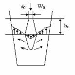 Din cauza rezistentei stratului de otel lichid din lingotiera liniile de curent isi pierd controlul liniar si primesc o deviatie opusa celei initiale. Astfel se nasc curenti de recirculatie care spala frontul de solidificare, viteza maxima a acestora inregistrandu-se in zona diametrului critic al jetului unde sectiunea de circulatie ale curentilor este minima. Datorita curentilor de recirculatie se mareste aportul de caldura la contactul cu frontul de solidificare. (Fig. 14)