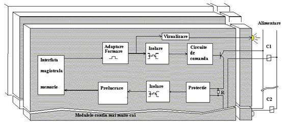 iesiri: acestea sunt digitale si permit comanda elementelor de comutare de tip releu sau tranzitor ce pot fi introduse īn schemele electrice de comanda. Acestea sunt notate cu O01-O04.