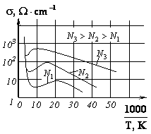 Dependenta tipica a conductibilitatii specifice a semiconduc-torului de temperatura este prezentata īn fig.1.23.