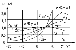 Practic toti parametrii schemei echivalente a tranzistorului, prezentate īn fig.1.19...fig.1.22, depind de temperatura.