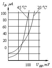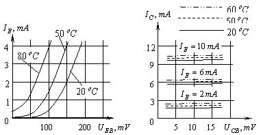 Caracteristicile de intrare, masurate pentru diferite temperaturi, se intersecteaza, deoarece unele componente din relatia (1.78) depind īn mod diferit de temperatura (fig.1.27).