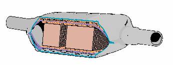 Structura alveolara este echivalenta cu o suprafata de contact a gazului de 2,8 m2 .Din punct de vedere al proprietatilor materialului, suprafata tratata este de 2 000 ą 5 000 m2 pe bloc ceramic. Ea este acoperita cu un strat subtire de metale pretioase ( Platina, Rohdiu, Paladiu).Acestea amorseaza si/sau cresc viteza reactiilor chimice de oxidare si reducere.