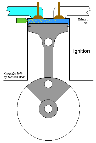 Amestecul de aer cu vapori de motorina, comprimat intr-un timp foarte scurt, explodeaza, impingand pistonul din punctul mort superior in punctul mort inferior.