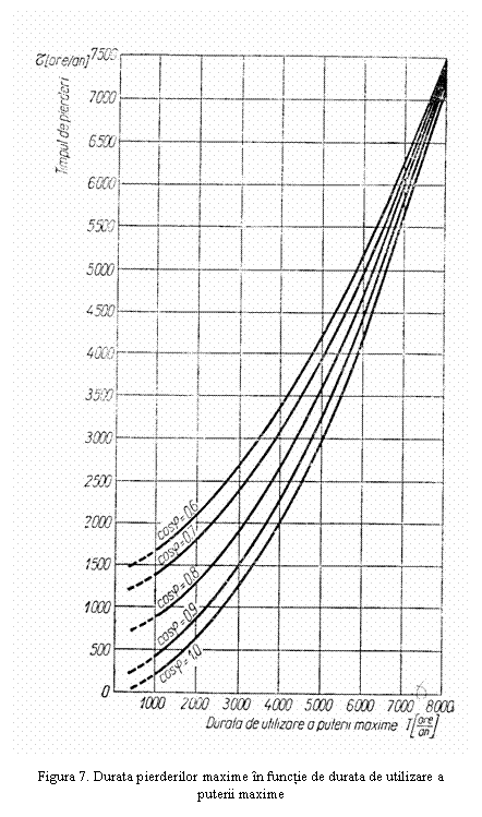unde t reprezinta durata pierderilor maxime care se deduce în functie de durata de utilizare anuala a sarcinii maxime si de factorul de putere al sarcinii, [ore/an] (Figura 7).