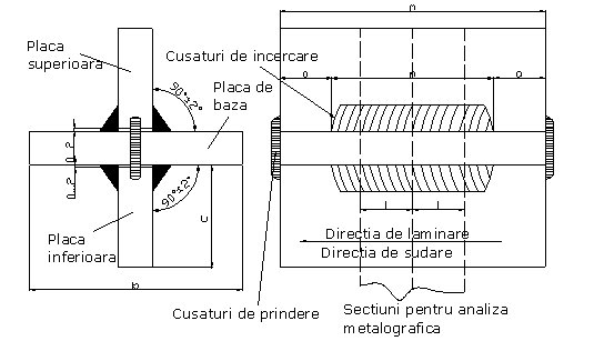 C) Metoda de incercare pe imbinari in cruce se executa pe epruvete de forma si dimensiunile din figura:.
