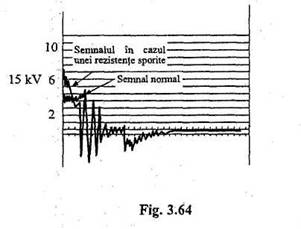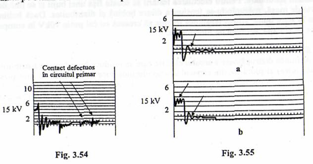 in circuitul primar pot apare defecte privind starea conductorilor electrici si a conexiunilor lor. Aceste defectiuni se identifica pe semnalul de tensiune secundara, unde apar perturbatii asemanatoare acelora prezentate in figura 3.54; ele nu sunt pozitionate strict, ci sufera oscilatii de plasament in zona respectiva.