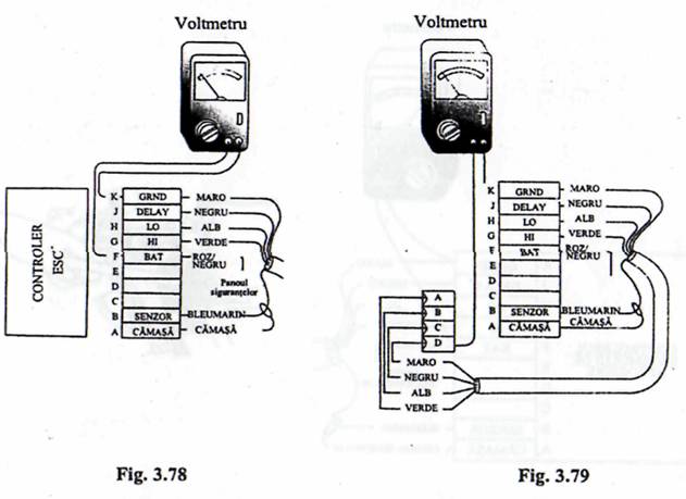 Se conecteaza borna - a voltmetrului la masa si borna + la borna K a modulului (fig. 3.91).