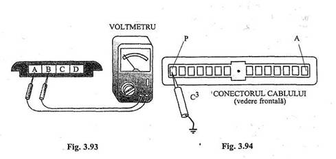 Se inchide contactul aprinderii si se pune celalalt cablu al voltmetrului in contact cu borna A a conectorului cu patru pini (fig. 3.94).