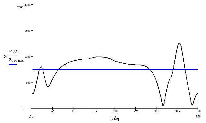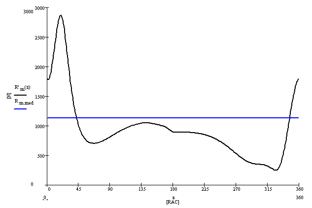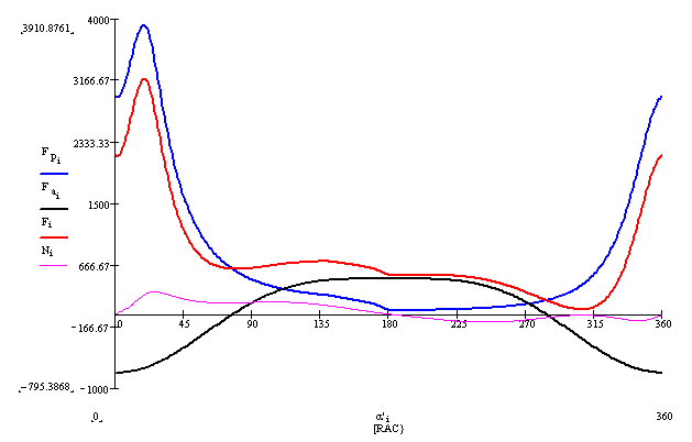 Figura 3.2.d Variația cu unghiul de manivelă a forțelor din mecanismul monocilindric aferent motorului naval.