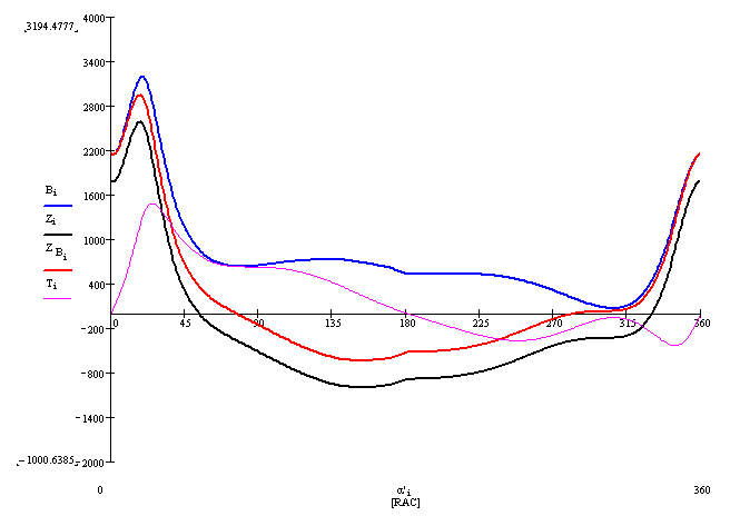 Conform formulelor prezentate în tabelul 3.2.1 se vor determina variațiile forțelor si momentelor din motorul naval aferent funcție de unghiul de manivelă,pentru variații ale acestuia din 5 în 5 grade.Rezultatele acestor calcule sunt prezentate în tabelele 3.2.2 si 3.2.3.