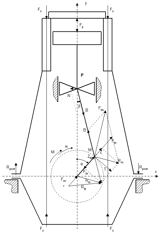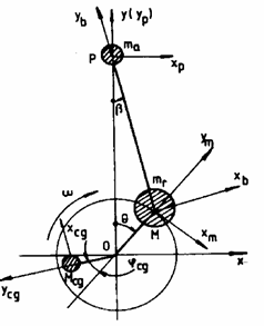 Pentru stabilirea forțelor si momentelor ce acționează în elementele si cuplele mecanismului motor, se adoptă un model dinamic al acestuia, sugerat în figura 3.2.a.