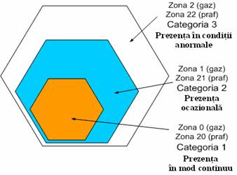 Corelatia dintre categoriile de echipamente si zonele cu pericol de explozie este data in tabelul urmator: