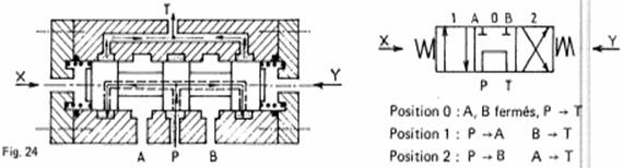 3 pozitii, centrare prin resort, pilotare hidraulica, alimentare externa:
