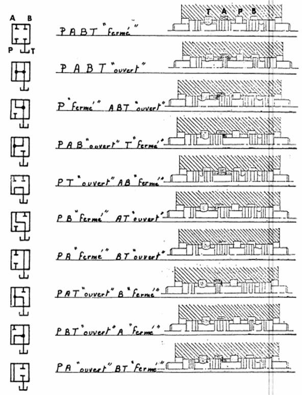 Atunci cand aparatul are in componenta 2 electromagneti, acestia permit realizarea iesirii in A (prin pilotarea in y), sau in B (pilotare in x), sau pozitia de repaus (in abesnta pilotarii).
