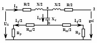 Similar si in acest caz calculul regimului de functionare in gol a acestei situatii conduce la relatiile: