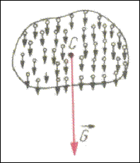 Un corp solid poate fi \mp#r]it mintal \ntr-un num#r extrem de mare de p#r]i, de dimensiuni at@t de mici, \nc@t s# le putem considera punctuale. Fiecare parte a corpului este atras# de P#m@nt cu o for]#, ce va reprezenta greutatea acelei p#r]i. For]ele de greutate, ce ac]ioneaz# asupra fiec#rei p#r]i \n care se consider# \mp#r]it corpul, sunt toate paralele \ntre ele.