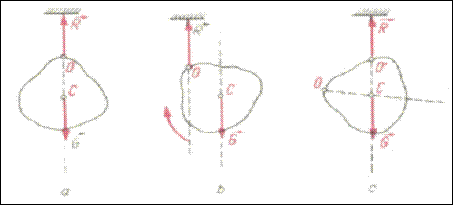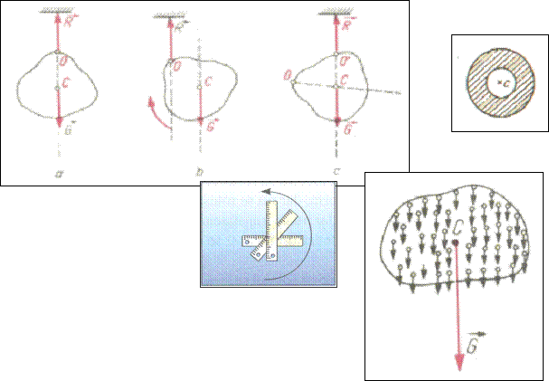 Dac# se suspend# corpul \n alt punct O'(c), la echilibrul central de greutate C trebuie s# fie pe verticala care trece prin O'. Rezult# c# centrul de greutate se g#se[te la intersec]ia verticalelor duse, la echilibru, prin punctele de sus]inere.