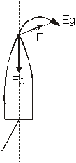 Punctul giratoriu se deplaseaza spre prova navei, fata de centrul de greutate. Momentul fortei F , M=F d, unde d este bratul fortei, va creste.