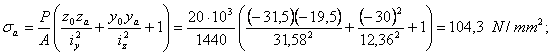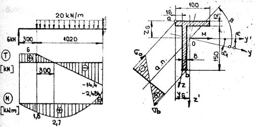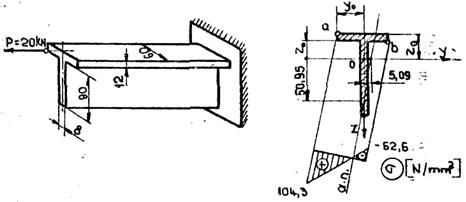 Tensiunea maxima apare în punctul I (de coordonate z1 = -1 b si y1 = 0,5 b) si are valoarea