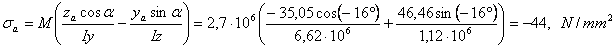 za =za'· cos - ya'· sin = -46,5 cos 16° - (-35) sin 16° = -35,05 mm;