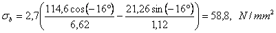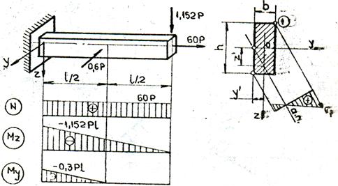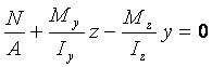 Înlocuind N = 60 P, My = -1,152 Pl, Mz = -0,3 Pl, A = 2,4 b2, Iy = 1,152 b4, Iz = 0,2 b4, se obtine ecuatia axei neutre în sectiunea din încastrare