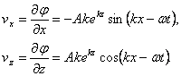 iar suprafata libera va avea o expresie similara cu cea a valului plan calator de mica amplitudine: