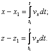 La timpul t particula se va afla īn punctul M(x,z), iar la timpul