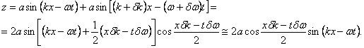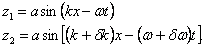 Sa consideram doua valuri calatoare, de amplitudini egale si perioade apropiate: